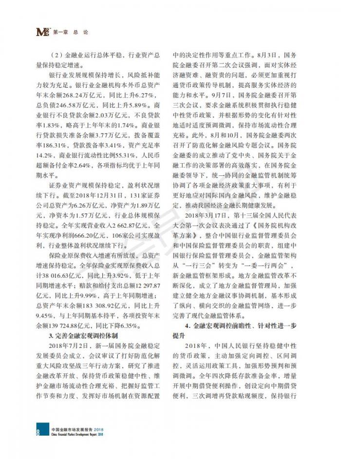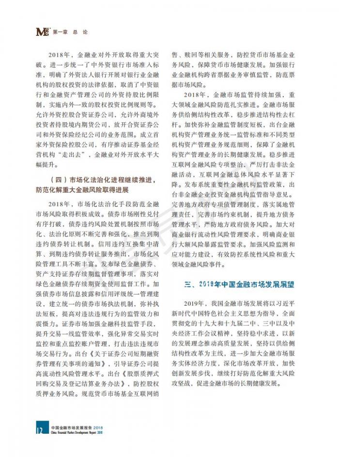 2018年,全球经济增长势头放缓,国际金融市场走势分化,整体金融环境有所收紧。面对国内外经济金融影响因素增多的复杂环境,中国经济发展总体平稳,经济运行保持较强韧性。金融市场运行稳中有进,市场改革与创新持续深入,服务民营企业小微企业等实体经济功能更趋优化,对外开放举措有序推进,市场化、法治化防范化解金融市场风险取得积极进展。
