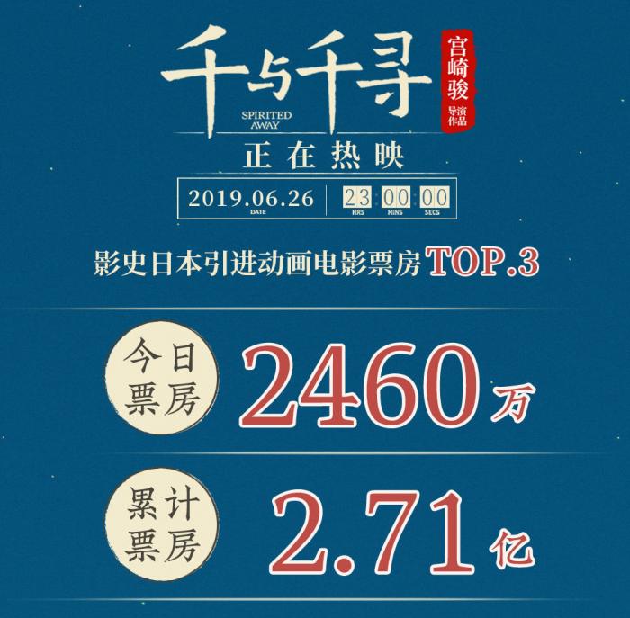 视频丨上映6天票房累计破2.71亿元!《千与千寻》创下日本影片在华上映的首周末票房纪录