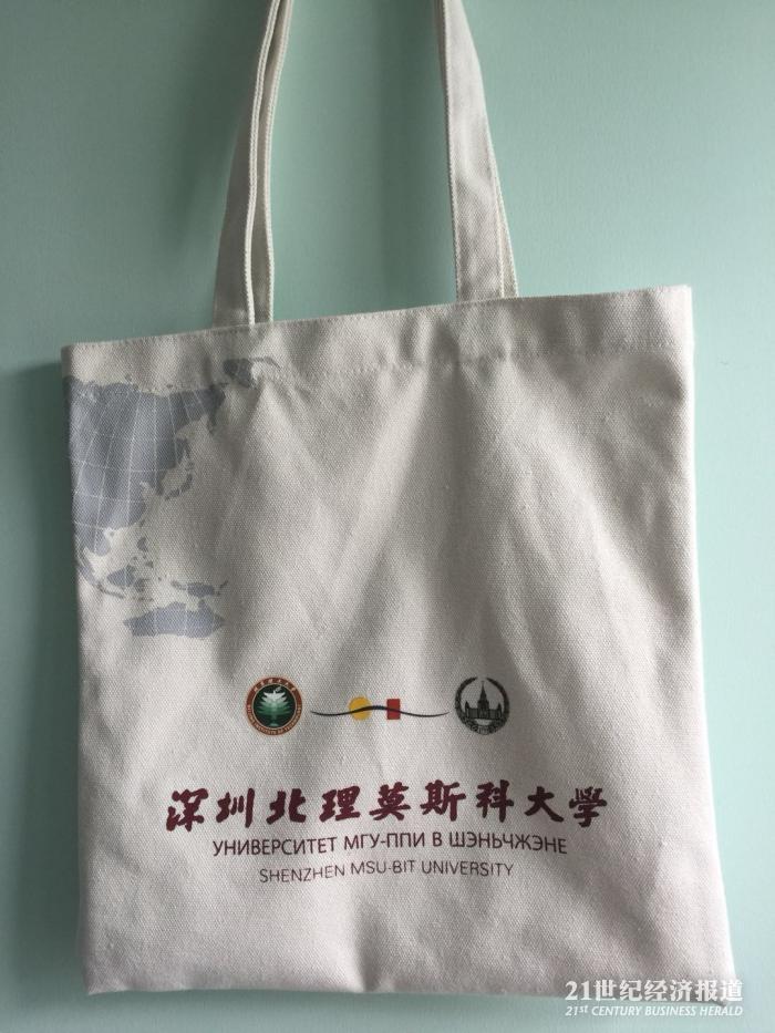 6月29日,21世纪经济报道记者背着深圳北理莫斯科大学提供的用于装资料的环保袋,在深圳罗湖医院被一名医生询问:听说这所学校在龙岗,已经开始招生了吗?报考需要有俄语基础吗?是不是主要设置的理工类专业?