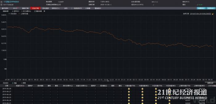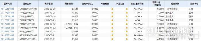 两只债券中,“17津航空MTN001”发行总额13亿元,计息债券利率7%,今年于4月14日到期。天津航空曾于4月9日发布付息公告。“17津航空PPN003”发行总额5亿元,将于2020年10月26日到期,票面利率7%。
