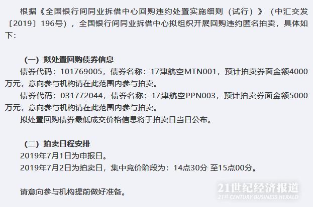 首次回购违约匿名拍卖将启动,为海航集团旗下天津航空两只债券