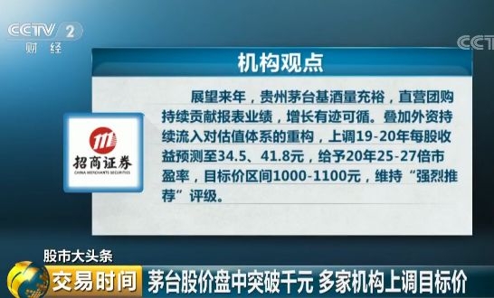 招商证券认为,展望来年,贵州茅台基酒量充裕,直营团购持续贡献报表业绩,增长有迹可循。叠加外资持续流入对估值体系的重构,上调2019-2020年每股收益预测至34.5元、41.8元,给予2020年25-27倍市盈率,目标价区间1000元-1100元,维持“强烈推荐”评级。