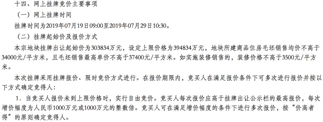 如位于萧山区的萧政储出(2019)24号居住用地(含配套幼儿园),出让面积6.08万平方米,规划地上建筑面积15.19万平方米。起始价30.38亿元,上限价格为39.48亿元;毛坯销售均价不高于34000元/平方米,且毛坯销售最高单价不高于37400元/平方米;如实施装修销售的,装修价格不高于3500元/平方米。