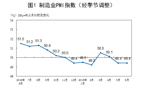 6月30日,国家统计局公布2019年6月中国采购经理指数(PMI)为49.4%,与上月持平。