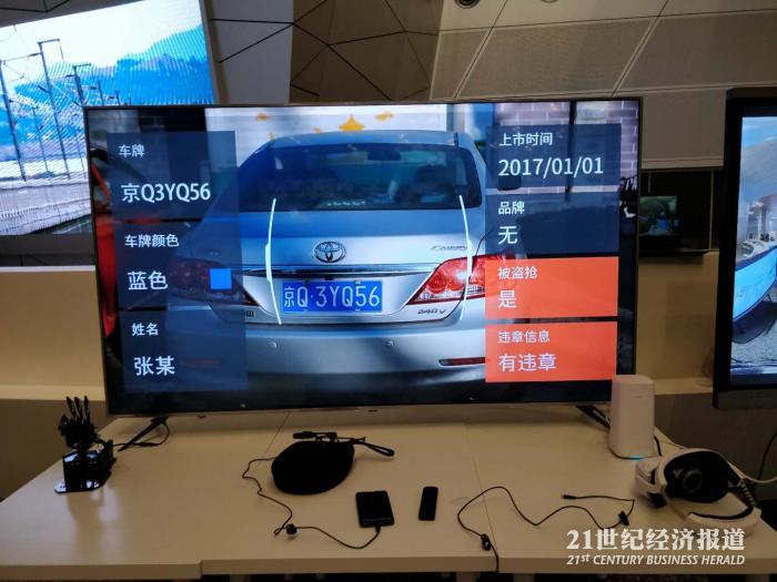 另一项让人惊讶的技术是应用于安保领域的智能眼镜。如图所示,一个佩戴智能眼镜的执勤人员不仅接到总部的各项指令,而且还可以通过接入身份证、车证等数据库,并结合人脸识别、自动扫描等技术,第一时间识别可疑人员和车辆。
