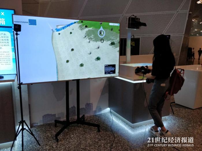 除了上述“爆款”,其实,其他“黑科技”也很有趣味。比如,这个智能沙箱。这项技术可以应用于课堂教学。学生们带上VR眼镜后,用铲子铲动沙箱里的沙子,就可以自己改变视野中的地理环境。