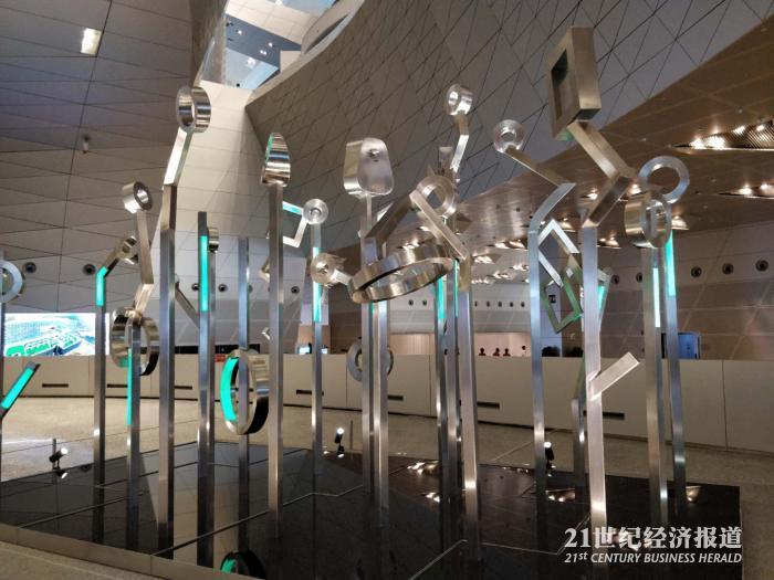 年会不只有“黑科技”,还有各种艺术创意。这作品展现了人与自然的关系。作者以植物为灵感,将多种植物进行抽象概括并使用不锈钢材质制作而成,与植物本身的柔美状态形成强力对比。每个装置作品都旨在展现人类对于大自然的尊重。