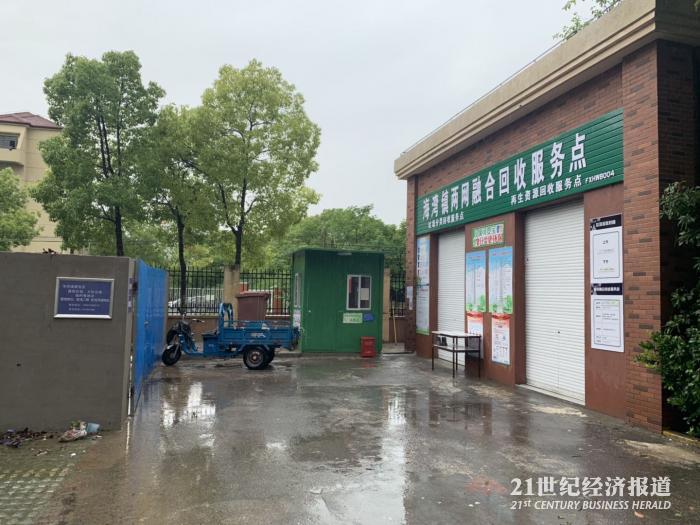早上8点半,记者来到上海奉贤区海湾镇垃圾分类投放点时,这里已经结束了投放时间,大门紧闭。