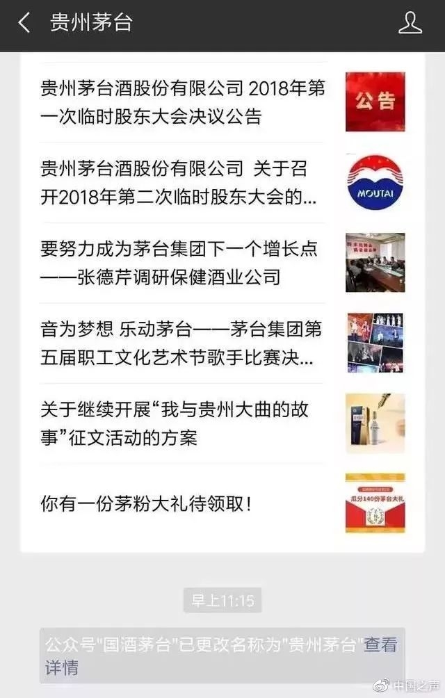从昨天开始,“国酒茅台”正式改叫“贵州茅台”,告别了曾经使用多年的“国酒”宣传语。6月29号上午,茅台微信公众号名称由“国酒茅台”悄然更名为“贵州茅台”。而打开茅台酒股份有限公司网站,上面也没有了“国酒”字样。