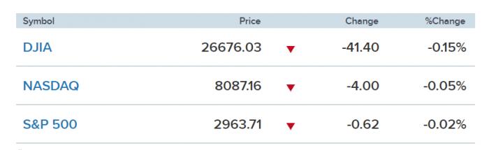 投资者的乐观情绪未能延续。当地时间7月2日周二,美股三大指数开盘全部小幅下跌。道琼斯工业指数跌41点,标准普尔500指数和纳斯达克综合指数均低开约0.05%。截至记者发稿,道指跌0.15%,报26676.03点;纳指跌0.05%,报8087.16点;标普500跌0.02%,报2963.71点。此前一天,标普500创收盘纪录新高。