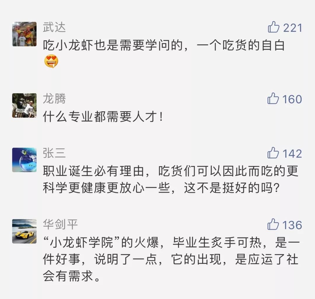看到龙虾学院首届学生毕业的消息后,不少网友感叹,小龙虾专业贵在“接地气” “学做小龙虾是一门出了校园就能上岗的手艺”。