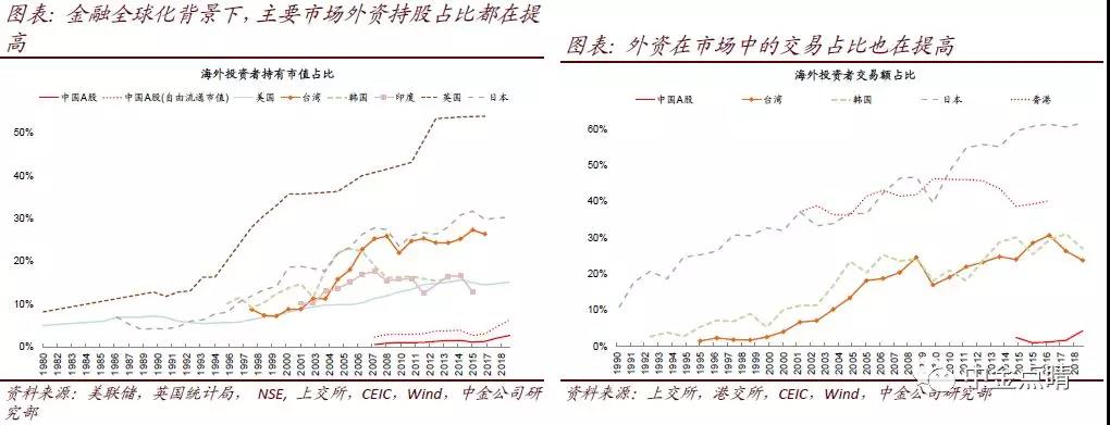 国际横向比较来看,外资及整体机构持股比例还有上升空间