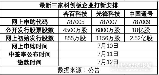 7月1日晚3家企业集中发布招股意向书以及发行时间安排,分别为容百科技、光锋科技、中国通号。3家公司均将在10日迎来网上申购。