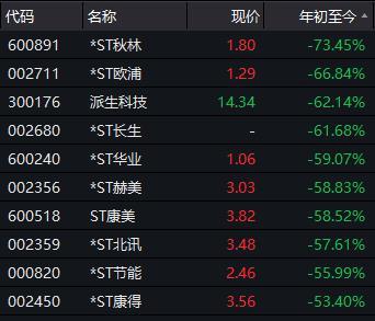 不过,盘点发现,在退市和重组“三高”问题持续从严监管之下,今年以来位居股价跌幅前30名的个股,基本都是来自ST板块。