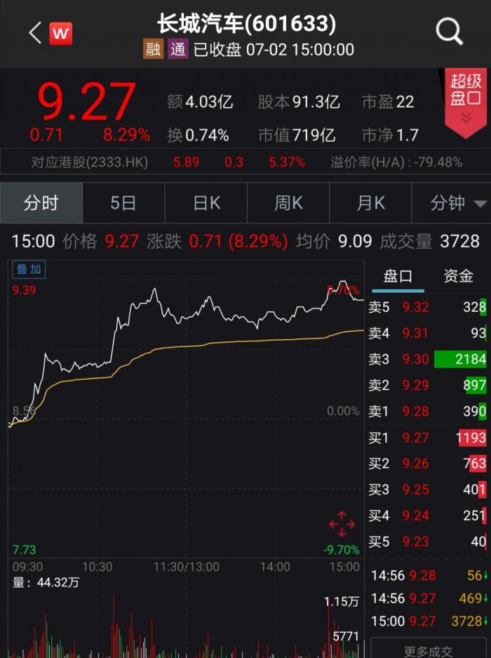 7月2日,在2019世界新能源汽车大会召开日,新能源汽车概念异军突起,带动整个汽车板块走强,老牌车企长城汽车A股大涨8.29%,H股大涨逾5%。