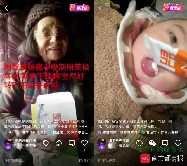 “喝了10盒婕斯产品,40天后甲状腺结节恢复了”,“阿婆直肠癌中晚期,用美极客苹果干细胞,果然好转不用动手术啦”,“脑梗患者用了小分子肽痊愈”……多部委联合整治保健市场乱象以来,各平台对保健品广告监管趋紧,然而,南都记者近日调查发现,不少商家已转战美拍、微视等短视频平台,让“患者”现身说法,将各类保健品“疗效”宣传得神乎其神。