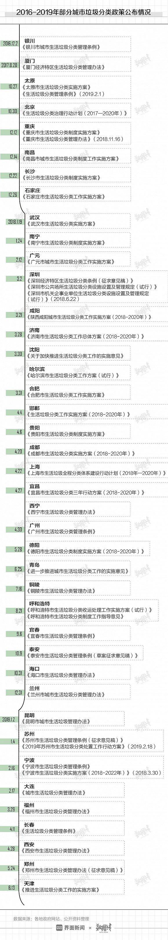 2019年7月1日起,上海正式进入垃圾分类时代。据2017年12月20日住建部发布的《关于加快推进部分重点城市生活垃圾分类工作的通知》,2020年底前,46个重点城市基本建成生活垃圾分类处理系统。在上海之后,下一个跟进的城市将会是“谁”?