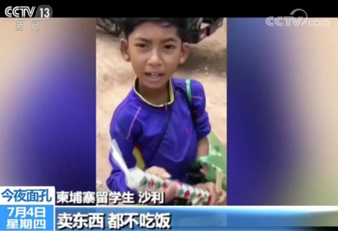 柬埔寨留学生 沙利:以前半天卖东西,半天读书。很累,巨累。我不想卖东西,但是我妈妈养家很难,所以我就卖东西了。这里不累,那边很累。