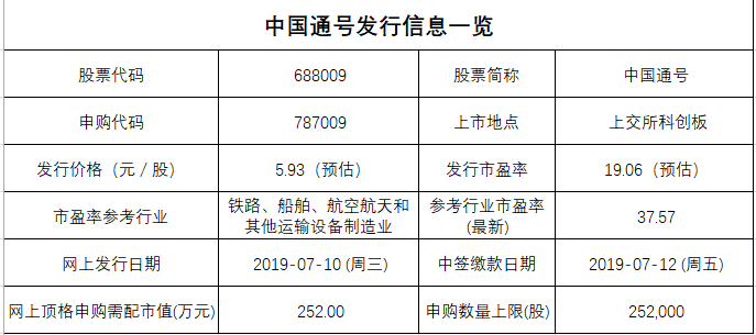 3、中国通号:股票代码:688009,申购代码:787009,顶格申购所需市值252万元,顶格申购股份25.2万股。