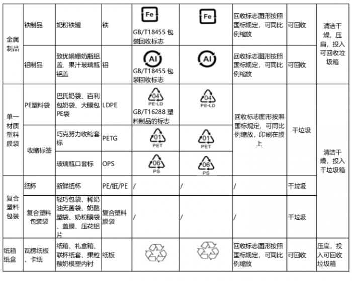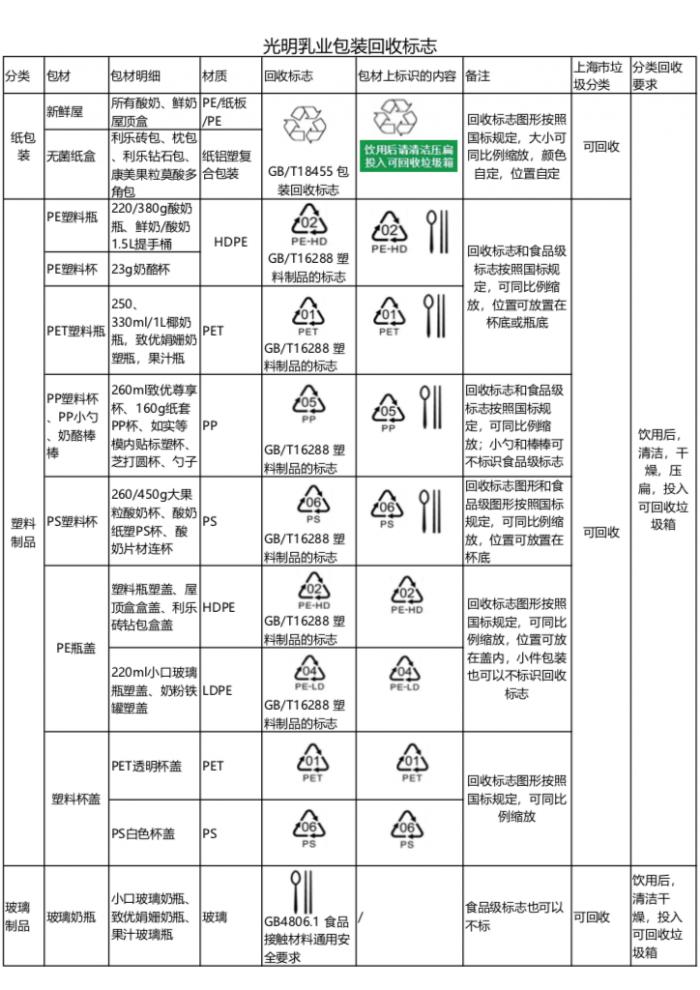 1)牛奶盒,以上海本土企业光明的产品为例,简单来说就是可回收和干垃圾。