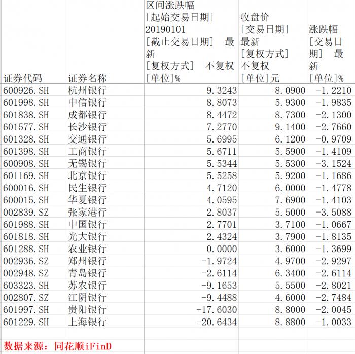 银行股冰火两重天:新股上涨5成,次新股下跌2成