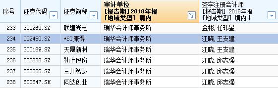以2018年为例,除了康得新以外,江晓还是天晟新材、勤上股份、三川智慧和同达伟业四家公司年报的签字会计师。