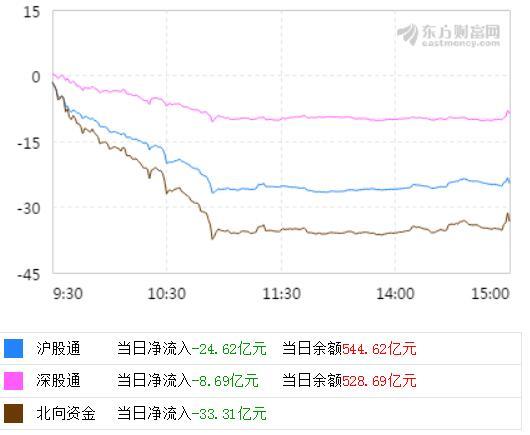 今日早盘,北向资金就呈现出加速净流出趋势。开盘不足两个小时,北向资金净流出规模就达到了37.41亿元。尽管随后北向资金有些许回流,但全天北向资金净流出也达到了33.31亿元。