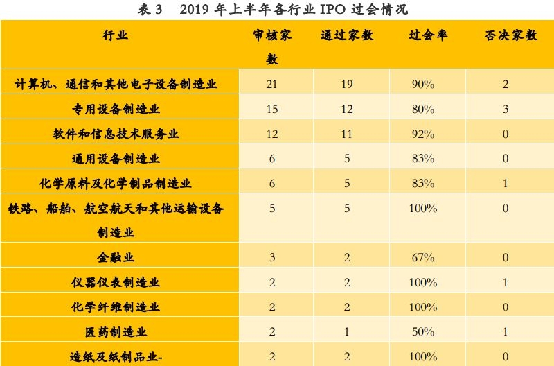 图3 2019年上半年各行业IPO过会情况