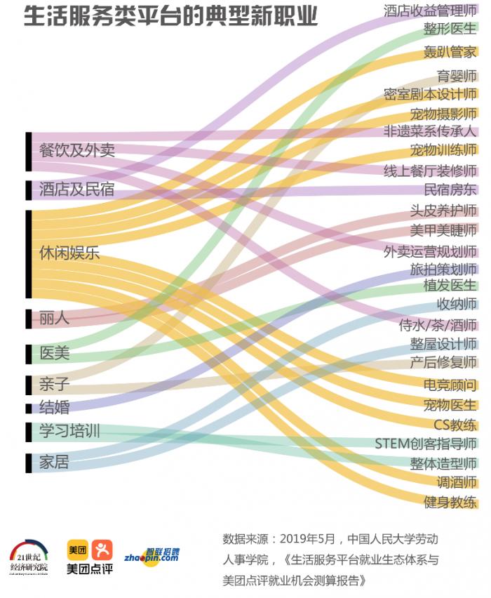 近日,21世纪经济研究院联合美团点评、智联招聘共同发布《2019年生活服务业新职业人群报告》(下称“报告”),通过分析我国生活服务业新职业的发展背景、发展现状和典型案例,对生活服务业新职业人群进行画像,全方位反映生活服务业新职业人群的风貌。报告认为,新职业名单范围不断扩大,生活服务业成新职业摇篮;同时生活服务领域的新职业也已成为就业蓄水池,新职业被从业者认为“行业发展快、前景好”。