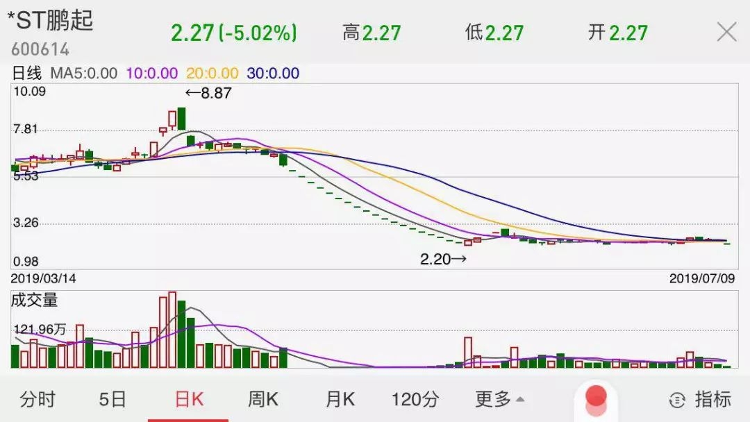 爆雷情况:今日开盘后,*ST鹏起一字跌停,这是*ST鹏起连续两个交易日跌停,两个交易日市值蒸发4亿元。