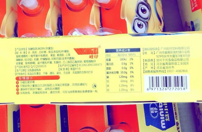 21世纪经济报道记者在网上商城调查发现,一款名为“旺仔”的发酵型乳味饮料外包装上印着神似“小黄人”的卡通形象,给消费者造成了混淆视觉效果。同时,这款乳味饮料还在包装上注明“商标授权商:广州旺仔饮料有限公司,制造商为沧州千尺雪食品有限公司”。
