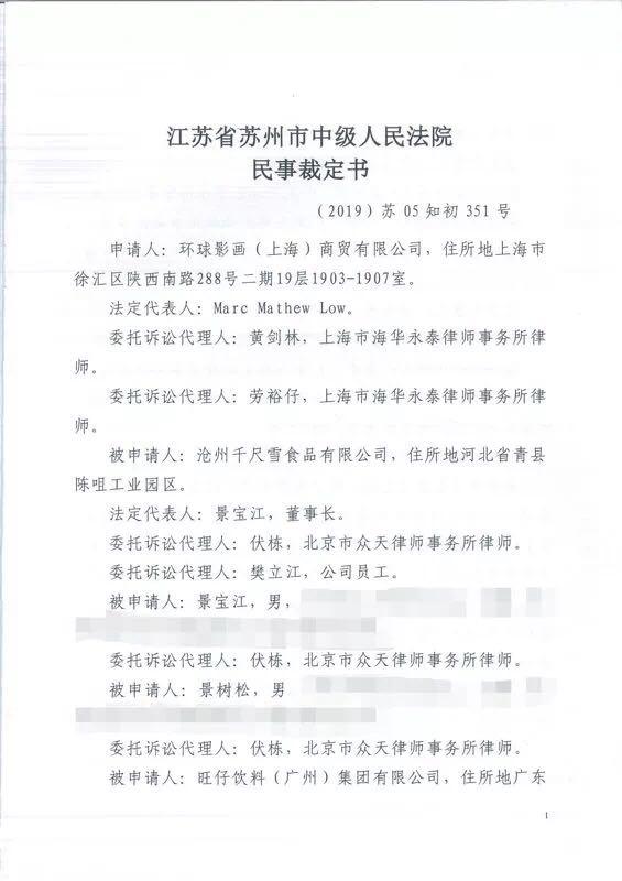 近日,美国环球影城公司(以下简称“环球影城”)收到江苏省苏州市中级人民法院下发的诉中禁令裁定。禁令裁定:沧州千尺雪食品有限公司、旺仔饮料(广州)集团有限公司、广东泰牛维他命饮料有限公司等六名被告立即停止生产及销售侵犯环球影城“小黄人”卡通形象著作权的乳制品,立即停止使用“小黄人”卡通形象进行宣传。