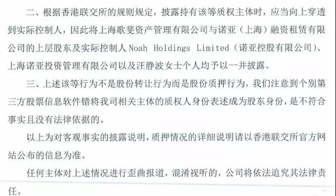 3、为什么炒股软件显示诺亚财富是股东,原来是根据港股的披露要求,会向上穿透到实际控制人,所以歌斐资产的上层股东以及实控人汪静波也一起披露了。