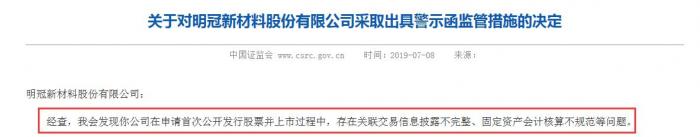 IPO现场检查威力究竟有多大?仅7月8日一天,中国证监会就对泓锦新材料、句容宁武、嘉曼服饰、斯达半导体、上海之江生物、明冠新材料6家拟IPO企业出具了警示函监管措施。