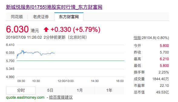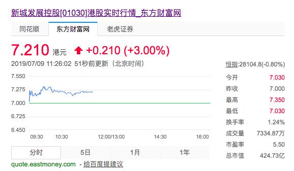 7月9日,受到王振华辞任消息的影响,新城发展控股上涨3%,报7.21港元,新城悦服务上涨5.79%,报6.03港元。