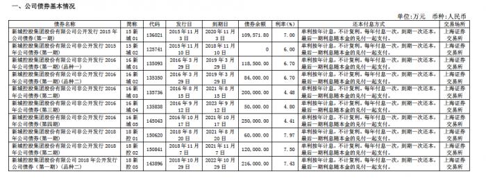 2018年年报显示,新城控股目前有“15新城01”、“15新城02”、“16新城01”、“16新城02”、“16新城03”、“16新城04”、“16新城05”、“18新控01”、“18新控02”、“18新控05”等债券明细。