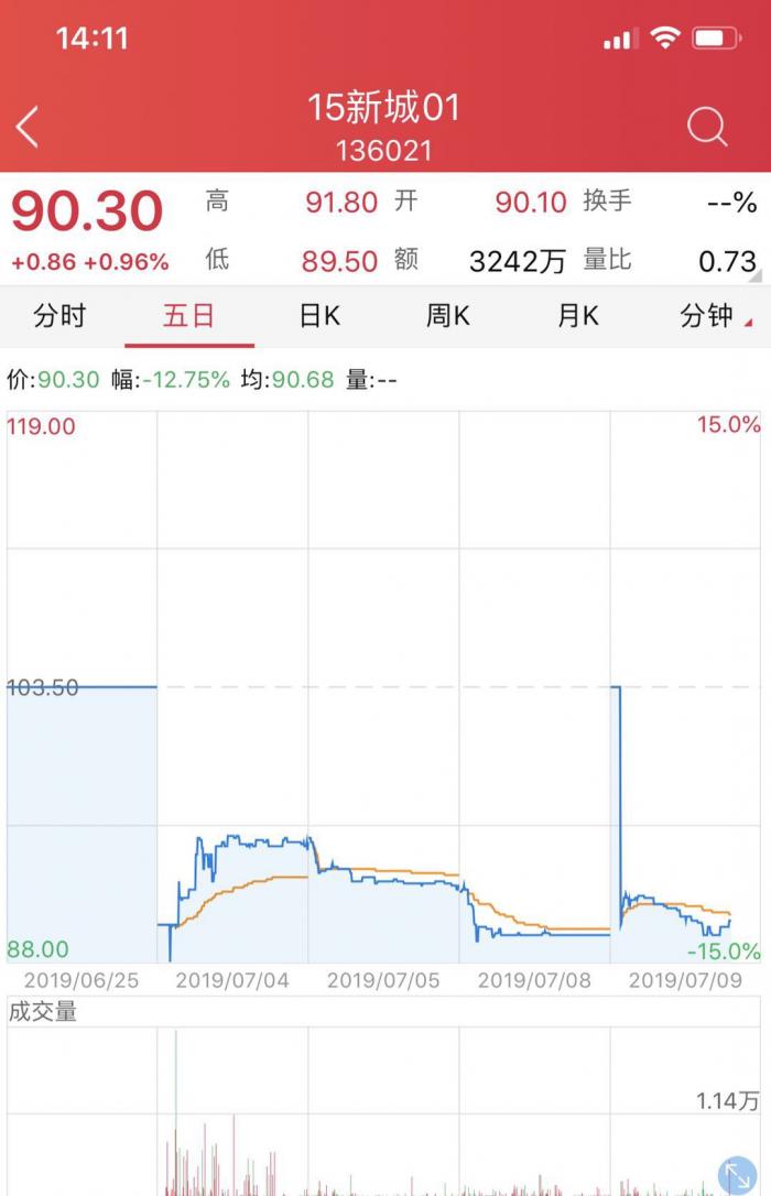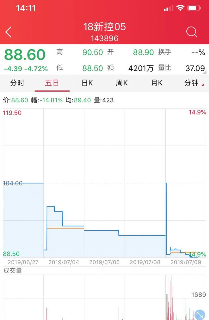截至7月9日发稿, “18新控05”下跌4.72%,“15新城01”则上涨0.96%。