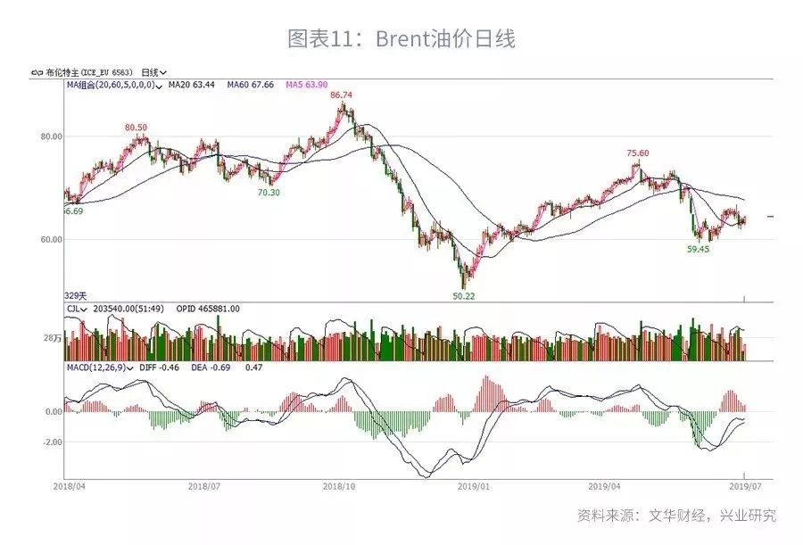 月初PMI数据显示贸易战已对经济信心带来实质损害,经济下行再次吸引市场注意力。中国6月制造业PMI实际值49.4未有好转,欧洲经济“火车头”德国6月制造业PMI持续衰退且低于预期,带动欧元区制造业信心进一步下滑。美国制造业PMI新订单跌至50的枯荣线边缘。不过周五大超预期的美国非农数据给市场打了一剂强心针,美国6月新增非农就业人口实际22.4万人,预期16万人,强劲数据打败所有华尔街主流机构预测,暂时缓解了美国经济即将陷入衰退的担忧。值得一提的时,6月制造业新增就业1.7万人,达到去年12月以来的最高水平。失业率虽小幅回升0.1%至3.7%,但主要系劳动参与率回升影响,侧面反映出劳动力市场吸引力增加。此前预期年内降息50bp概率超过90%,降息75bp概率约60%;非农数据公布后市场对美联储年内降息幅度的预期明显下修,降息50bp概率超过87.6%,降息75bp概率约45.6%。