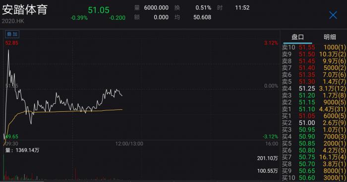 当天早盘,安踏体育以2%的跌幅开盘后股价显著回升,最高时股价曾冲至52.6港元(较前日收盘价上涨2.6%),但随着浑水第二部分沽空报告的出炉,安踏体育股价再次回落,截至记者发稿时,安踏体育继昨日下跌7.32%后,又跌0.39%。