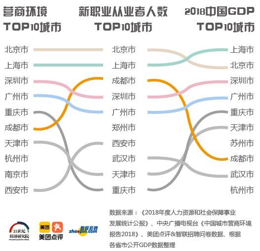 1.4.3区域城市发展为新职业助力:从本次调研数据看,城市生活服务业发展与新职业的发展程度呈正相关关系。经济活力强、营商环境好的城市,新职业发展态势良好。新职业从业人数、平均薪酬TOP10城市与城市经济体量排名基本吻合。本次调研数据显示,新职业人群平均薪酬位列全国TOP10的城市分别是:上海、北京、杭州、南京、苏州、深圳、广州、武汉、成都、天津。其中,新职业从业人数TOP10有九个城市进入2018年中国城市GDP TOP20(西安排在第21位),有八个城市进入营商环境TOP10。