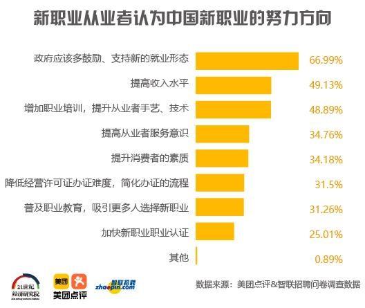 5.3灵活就业已是新职业人群的就业趋势,亟须更宽松的就业环境。近年来,平台经济、共享经济、众包等新经济业态快速发展,催生了年轻人喜欢的灵活工作模式,越来越多的年轻人身兼数职,“斜杠青年”不断涌现。建议我国政府营造更宽松的就业环境,加强对新就业形态的政策支持,将新兴职业如外卖骑手、外卖运营规划师、酒店收益管理师等纳入《中华人民共和国职业分类大典》,激发社会创新创业活力。