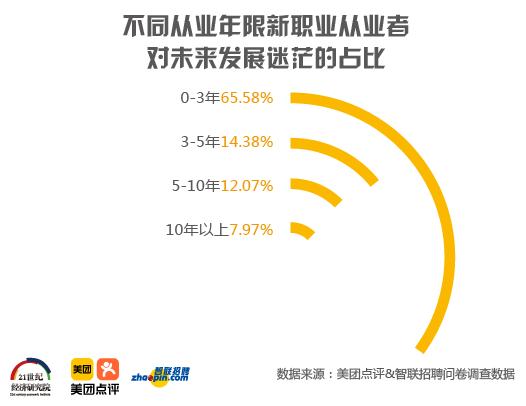 时间是新职业从业者治疗焦虑的良药。随着入行时间增长,技能、收入不断提高,新职业从业者对未来发展也越有信心。入行三年以内的新职业从业者选择“对未来发展感到迷茫”的比例是65.6%,入行三年以上的新职业从业者选择“对未来发展感到迷茫”的比例大幅下降至14.4%,入行十年以上的新职业从业者选择“对未来发展感到迷茫”的比例只有8%。