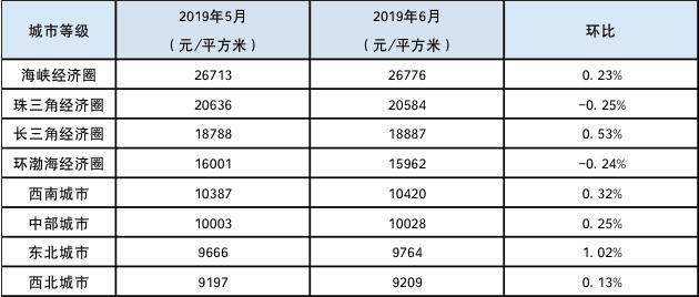 分区域来看,6月各个区域挂牌均价走势各异。