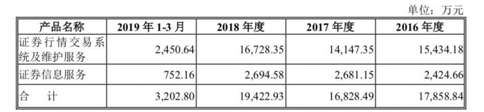 公司的主要产品与服务为“证券行情交易系统及维护服务”,占比超过8成。2018年收入为1.67亿元,占比86%。