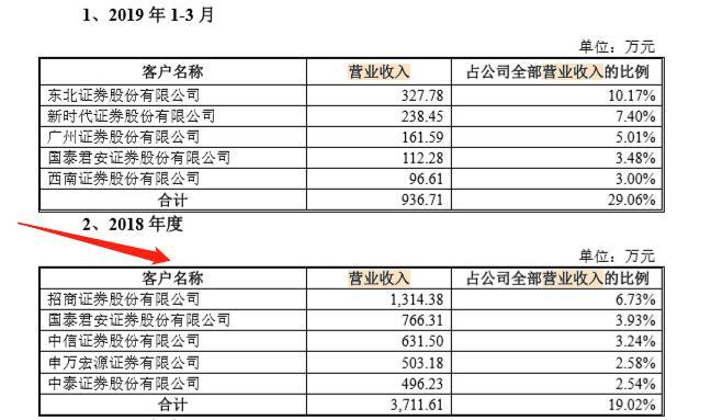 其中,2018年度其前五大客户为招商证券、国泰君安证券、中信证券、申万宏源证券和中泰证券,银河证券已经“悄然退出”前五之列。