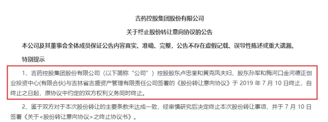 7月10日晚间,吉药控股发布了两份重要公告,一份是终止股份转让意向协议,一份是重大资产重组停牌公告。