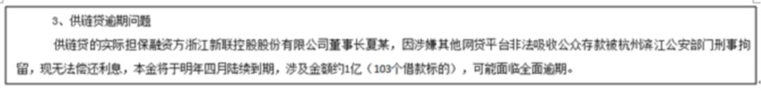 而新联集团旗下的新联控股是爆雷的P2P平台宜贷网供链贷的实际担保融资方。