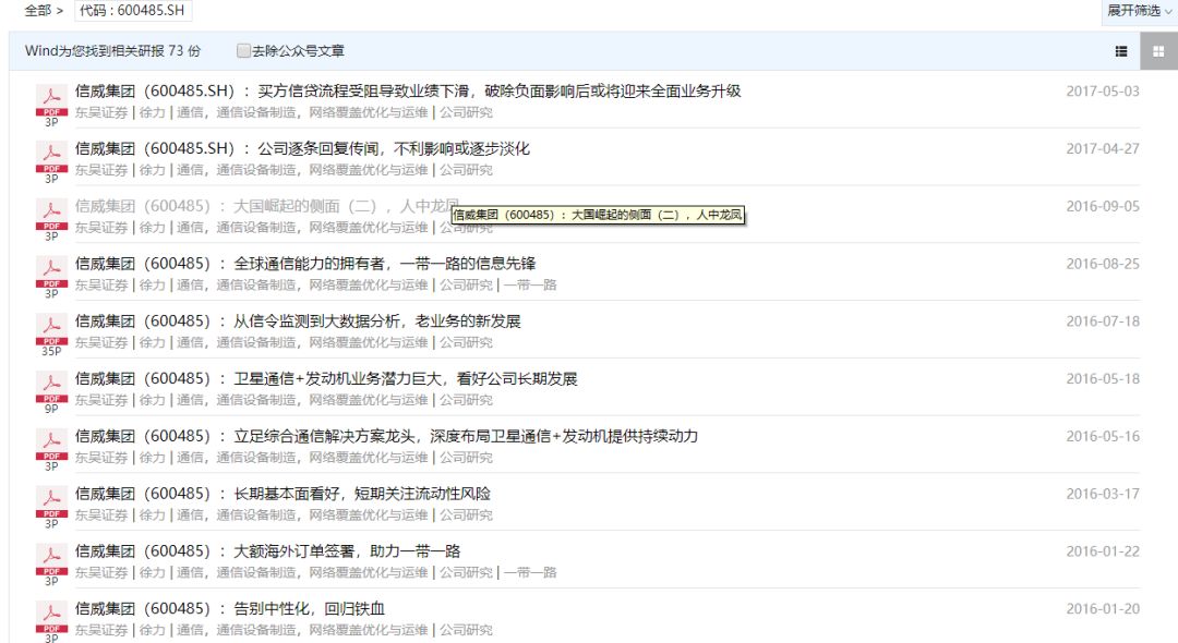 从wind来看,近几年写信威集团研报最多的是东吴证券。