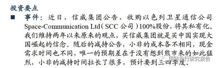 信威集团拟通收购以色列通讯卫星运营商——以色列空间通信100%的股份。