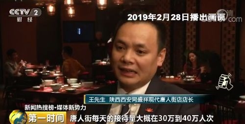 陕西西安同盛祥现代唐人街店店长 王先生:唐人街每天的接待量大概在30万-40万人次,到我们店里面的人数大概就在700-800人次。营业收入每天大概在7万到8万元。